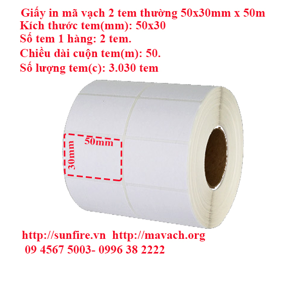 Giấy in mã vạch 2 tem 50x30mm